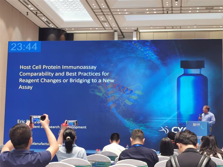 在抗體蛋白制品工藝開發(fā)與BLA會(huì)場,Cygnus研發(fā)副總裁Eric Bishop為廣大客戶做了題為“ Advanced Orthogonal Methods for Qualification and Bridging of Host Cell Protein ELISAs”的精彩演講,向大家介紹和分享了覆蓋率分析的最新方法和代表性的案例,獲得了聽眾的一致好評。