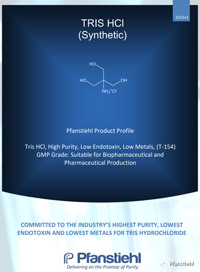 Pfanstiehl秉承一貫高品質(zhì)理念,繼Tris Base (T-153) 后再次重磅推出GMP級別Tris HCL T-154。目前藥典對Tris HCL無專論,Pfanstiehl將于2024年贊助USP設立Tris HCL的專論。Pfanstiehl的Tris Base和Tris HCL均為注射級別,具有超高純度,超低內(nèi)毒素,超低金屬雜質(zhì)殘留的特點,并同時檢測各種酶的殘留,如DNA酶,RNA酶,磷酸酶和脂肪酶等,也是全球首款將亞硝酸鹽加入質(zhì)控標準的Tris Base和Tris HCL,符合生物制藥和疫苗的生產(chǎn)要求。