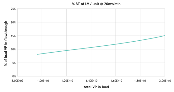 圖3. 15%穿透時(shí),每根離心柱的動(dòng)態(tài)結(jié)合載量1.9E+10。 Nereus LentiHERO?離心柱以20 mv/min的速度上樣,流穿收集在10mL液體中,使用p24 ELISA分析,基于上樣的總VP,計(jì)算VP穿透百分比。