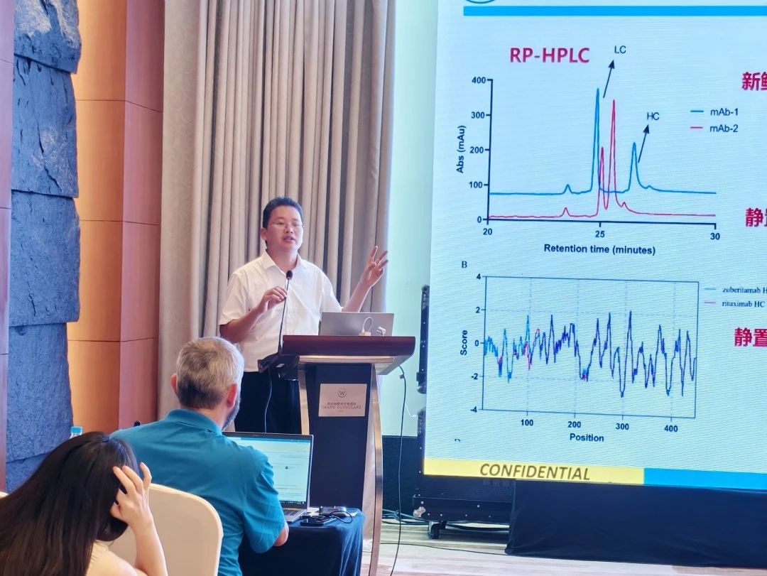 浙江大學(xué)研究員方偉杰博士作了主題為“毛細管凝膠電泳在蛋白類生物藥分析中的應(yīng)用和進展”,結(jié)合具體案例和實驗數(shù)據(jù),分別把CE-SDS在非還原條件下對重組蛋白的純度研究、還原條件下對單抗重鏈和輕鏈的異質(zhì)性分析,以及CE-SDS在小蛋白和多肽類生物藥的應(yīng)用與研究進展做了詳細報告,為CE-SDS方法在生物制品質(zhì)量控制的應(yīng)用提供了更廣闊的思路。