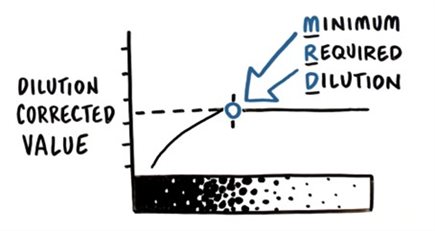 在進行ELISA分析之前,任何可能超過定量上限(ULOQ)的樣品都應(yīng)該先進行稀釋線性實驗。其過程包括:用驗證過的樣品稀釋液對HCP待檢樣品進行多個梯度稀釋,然后對這些稀釋樣品進行檢測,并計算每個稀釋樣品中校正后的HCP濃度(即測得的HCP濃度×稀釋倍數(shù))。大多數(shù)情況下,在達到一定稀釋倍數(shù)后,稀釋樣品校正后的HCP濃度值會出現(xiàn)相對恒定狀態(tài),那么該稀釋倍數(shù)則被稱為“最低需求稀釋度”(MRD)。