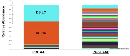 AAE分析流程首先將多克隆抗體共價固定在色譜柱上。然后對色譜柱進行條件調(diào)節(jié),以防止抗體的顯著浸出并極大地減少任何非特異性結(jié)合。原始未變性的HCPs樣品通過色譜柱與抗體進行結(jié)合,隨后用酸洗脫。通過結(jié)合和洗脫,HCPs樣品再次在柱上循環(huán),直到?jīng)]有其他HCPs被結(jié)合。所有收集的HCPs洗脫液再匯集、交換緩沖液并濃縮回原始樣品體積,為后續(xù)的分析提供高質(zhì)量的樣本。在收集到HCPs樣本后,可以選擇通過2D-PAGE+銀染或MS質(zhì)譜進行后續(xù)分析。