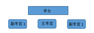 教師資格面試采取的是考官主考制度,這些考官大部分來自于當(dāng)?shù)厥∈械闹行W(xué)和幼兒園優(yōu)秀教師,此外,還有部分是教研機(jī)構(gòu)的優(yōu)秀教師。同時,這些考官都需要參加省級及以上的教育考試機(jī)構(gòu)培訓(xùn),通過考核后發(fā)放考官證書,持證上崗。面試現(xiàn)場考官總共3名,1名主考官和2名副考官,占C位的毫無疑問就是主考官,如下圖: