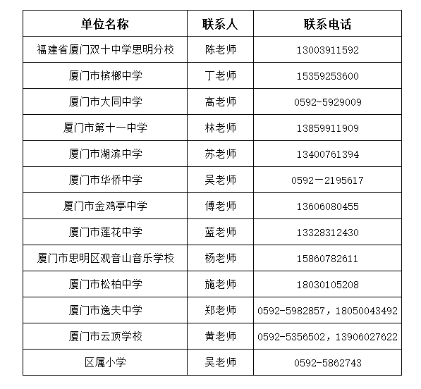附件4:2021年廈門市思明區(qū)教育局區(qū)屬學(xué)校校園招聘工作聯(lián)系人