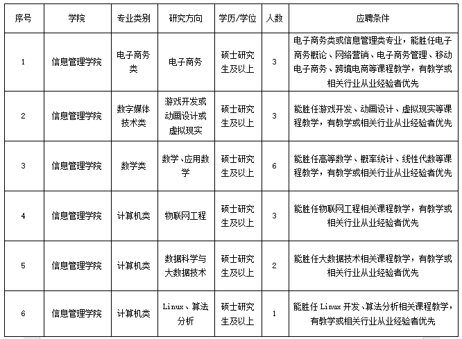 學(xué)歷應(yīng)為本一、本二批普通高等學(xué)校全日制本科畢業(yè),并獲得學(xué)士學(xué)位;碩士及以上學(xué)位的專(zhuān)業(yè)應(yīng)和第一學(xué)歷的專(zhuān)業(yè)相同或相近。具有履行教師職責(zé)所需要的素質(zhì)和業(yè)務(wù)能力,高度的事業(yè)心和責(zé)任感,健康的體魄和良好的心理素質(zhì);善于溝通,有較強(qiáng)的親和力和感染力。