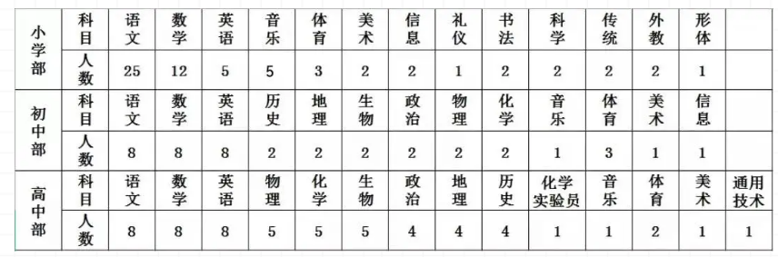 (三)高中部教師年薪總收入為15-50萬,各學科獲得省級或省級以上優(yōu)秀教師稱號的老師薪資可以面議。