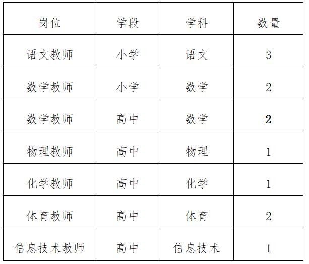 本次計(jì)劃公開(kāi)招聘中小學(xué)教師12名,具體崗位如下: