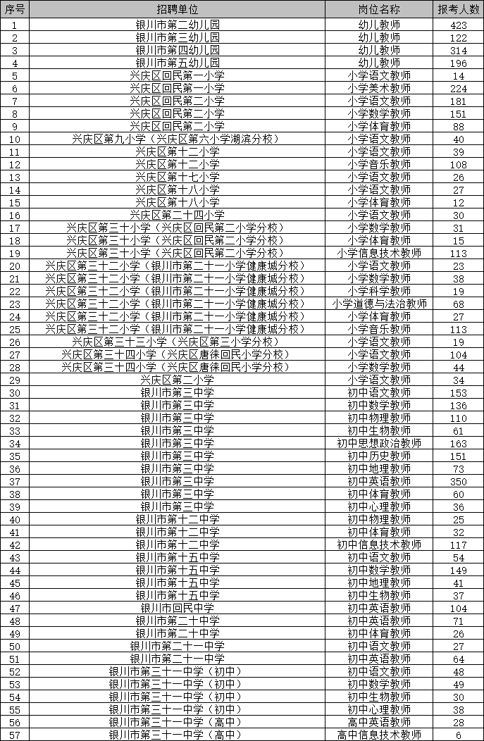 銀川市興慶區(qū)2022年第二批直屬中小學(xué)校(幼兒園)自主公開招聘教師報(bào)考人數(shù)公示