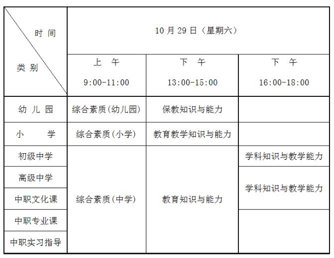 (一)中小學教師資格考試(筆試)日期為2022年10月29日,具體時間安排如下: