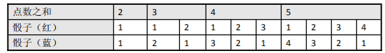 1.教師引導(dǎo)學(xué)生思考:如果點數(shù)之和是 2,那么紅色骰子上是 1,藍(lán)色骰子上是多少?