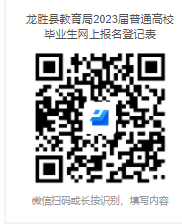 請(qǐng)于2023年1月5日前登錄微信掃描下方二維碼進(jìn)入龍勝各族自治縣教育局赴區(qū)內(nèi)招聘2023屆普通高校畢業(yè)生網(wǎng)上報(bào)名系統(tǒng)進(jìn)行報(bào)名。