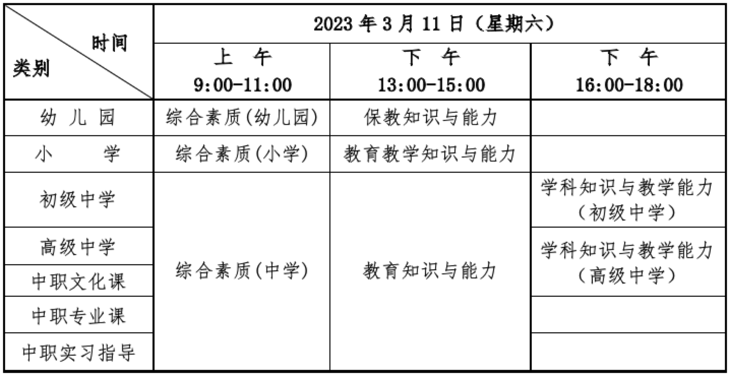 湖北教師資格考試安排