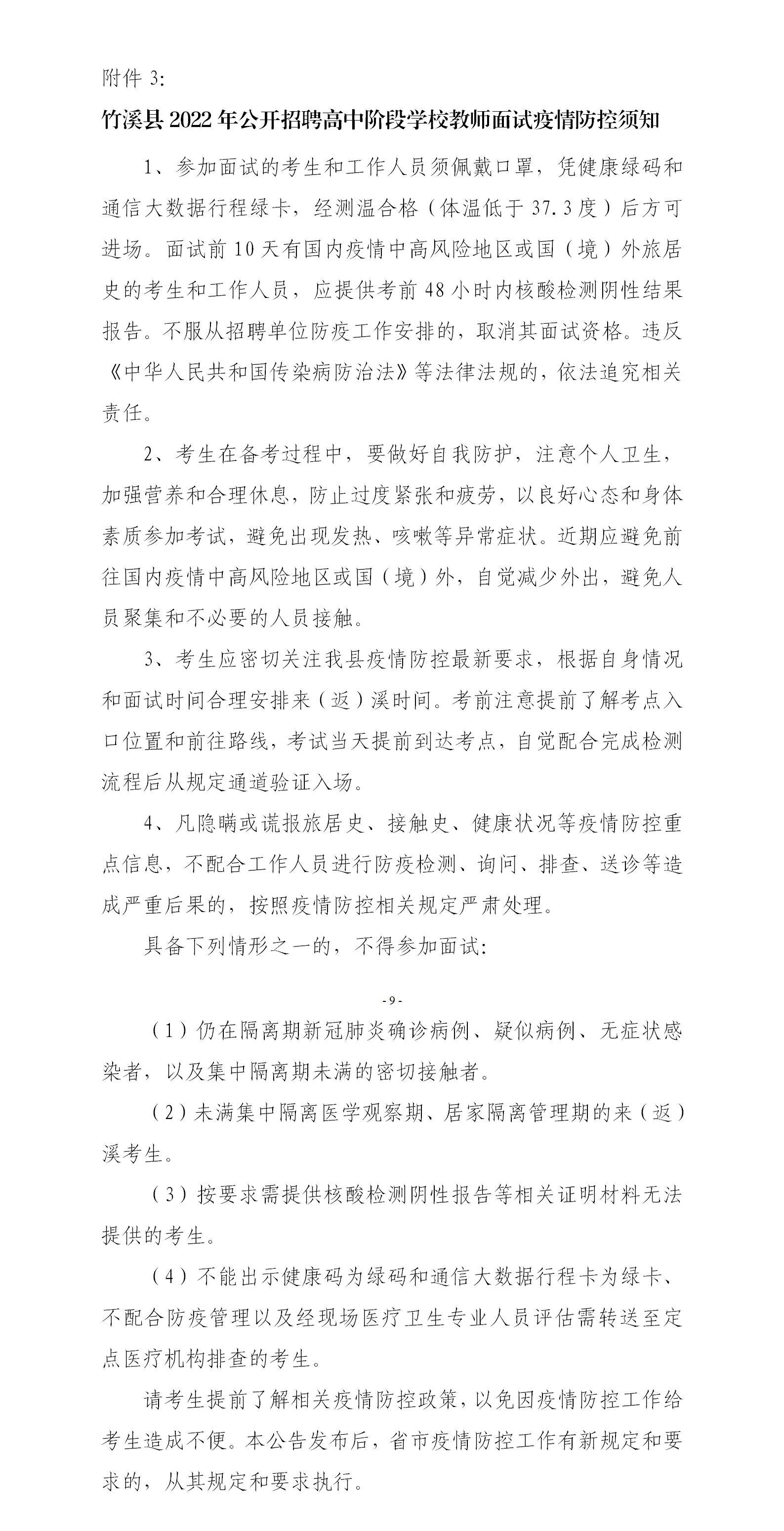 3.竹溪縣2022年公開招聘高中階段學(xué)校教師面試疫情防控須知