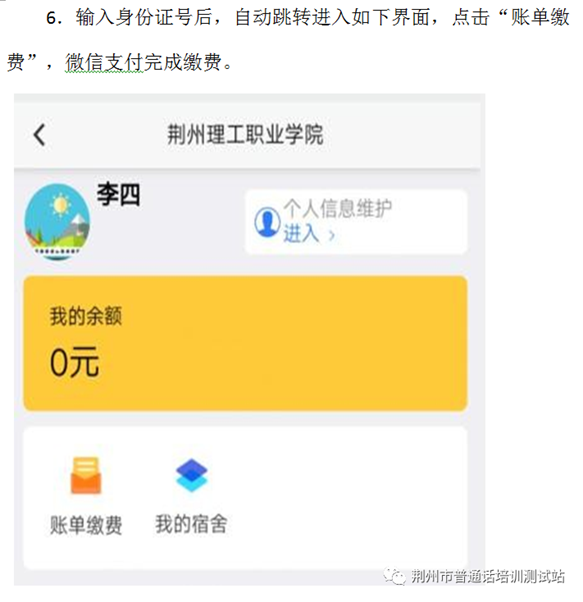 6.特別提示:荊州市普通話培訓(xùn)測試工作站未與其它任何社會培訓(xùn)機(jī)構(gòu)、網(wǎng)站合作代報名、代繳費(fèi)、代培訓(xùn)和測試等服務(wù),請廣大考生謹(jǐn)防上當(dāng)受騙。報名后務(wù)必關(guān)注荊州市普通話培訓(xùn)測試站微信公眾號(Jzspthcsz)或荊州理工職業(yè)學(xué)院培訓(xùn)中心網(wǎng)站,所有相關(guān)事宜均通過微信公眾號和培訓(xùn)中心網(wǎng)站發(fā)布。