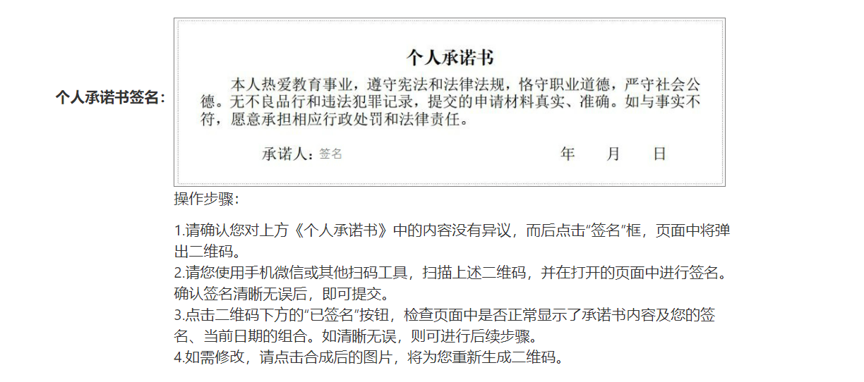 特別提示:申請人需提前下載安裝學(xué)信網(wǎng)APP,在報名時掃碼授權(quán),并在報名認(rèn)定系統(tǒng)上點擊“已完成”按鈕,完成學(xué)歷學(xué)籍信息核驗,具體的申報操作步驟,申請人查閱《教師資格認(rèn)定申請人使用手冊》(附件1)。