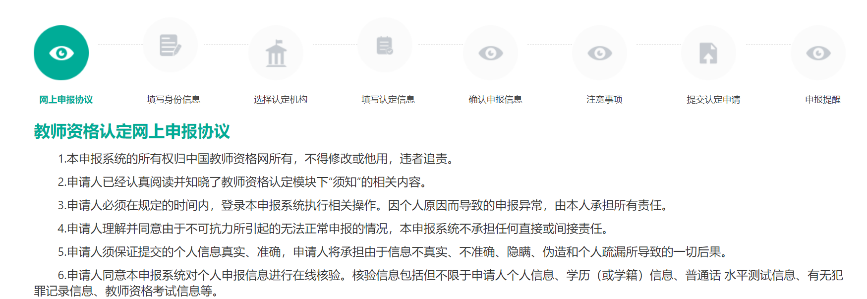 (三)申請人應(yīng)如實提交相關(guān)材料,并對所填報的個人信息提供的現(xiàn)場審核材料的準(zhǔn)確性、真實性負(fù)責(zé);故意弄虛作假,騙取教師資格的將依據(jù)國家有關(guān)規(guī)定進(jìn)行處理。