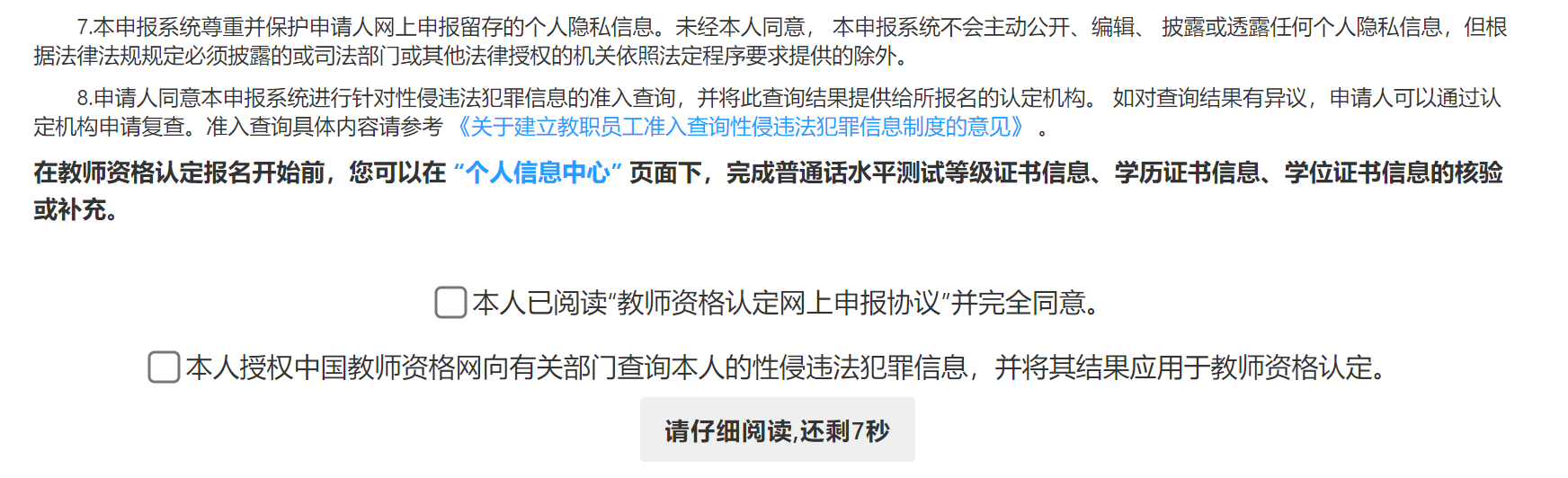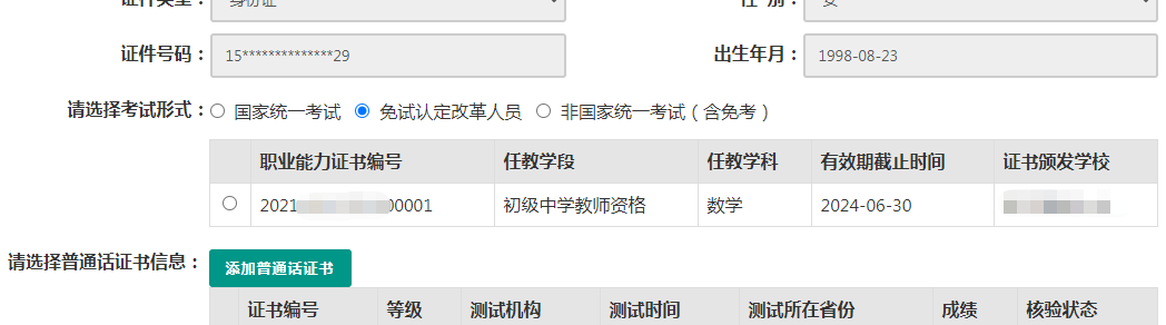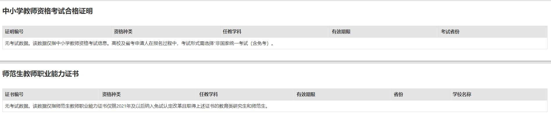 教師資格考試信息:只有參加了國家中小學(xué)教師資格考試且成績合格的申請人,此處才會自動同步考試合格證明上的相關(guān)信息。