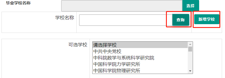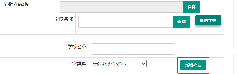 添加學(xué)歷證書時,如您所畢業(yè)的學(xué)校不在可選范圍之內(nèi)(查詢不到),您可點擊“新增學(xué)校”按鈕,填寫相關(guān)信息,而后點擊“新增確認(rèn)”即可。