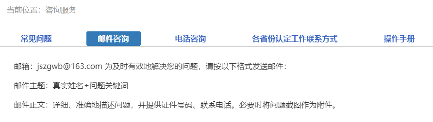 如因證書已在報名業(yè)務(wù)中使用、報名信息已進(jìn)行現(xiàn)場確認(rèn)等原因無法修改,請聯(lián)系您的認(rèn)定機構(gòu),或發(fā)郵件至jszgwb@163.com聯(lián)系我們。