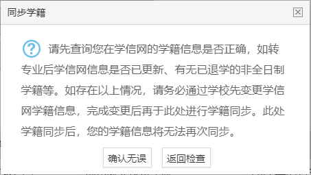 學(xué)籍信息:應(yīng)屆畢業(yè)生只可在認(rèn)定報名過程中通過【同步學(xué)籍】功能進(jìn)行同步。同步后的學(xué)籍信息會在個人信息中心展示。研究生應(yīng)屆畢業(yè)生需補錄上個學(xué)歷信息。