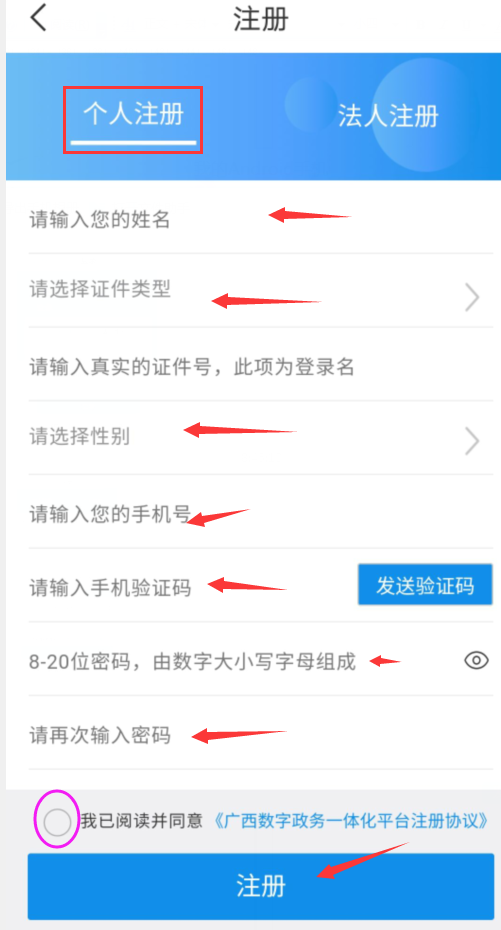 勾選“我已閱讀并同意”,點(diǎn)擊“注冊(cè)”。