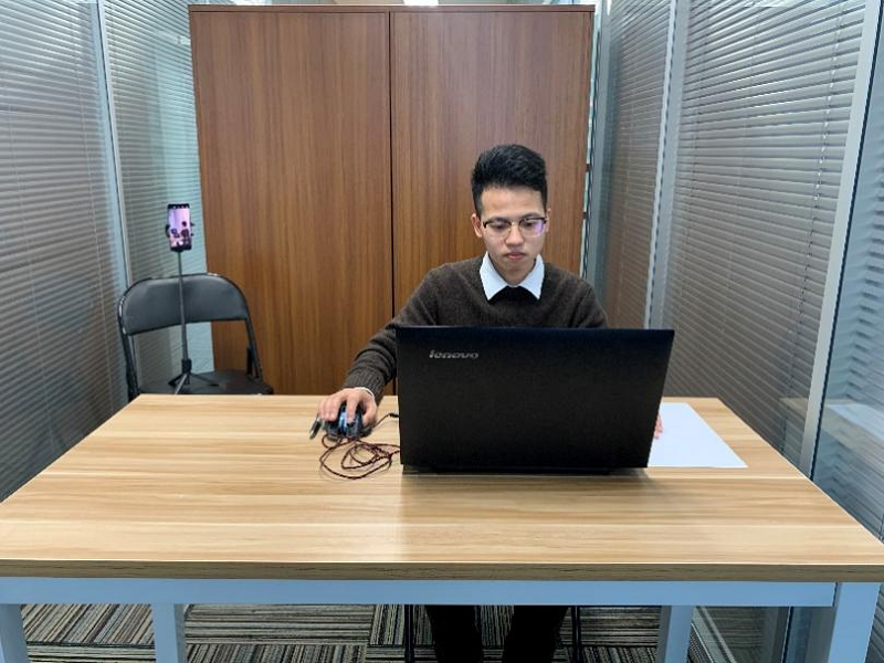 (4)考試開始前,考生需要先登錄移動(dòng)端“智考通”,用前置攝像頭360度環(huán)繞拍攝考試環(huán)境,隨后將移動(dòng)設(shè)備固定在能夠拍攝到考生全身(含側(cè)面)、考試桌面、完整的考試設(shè)備(電腦屏幕和鍵盤等)、考生雙手動(dòng)作(考生行為)及考生周圍環(huán)境的位置上繼續(xù)拍攝考試全程(詳見說明書中《智考通操作手冊(cè)》《智考云在線考試規(guī)范》)。請(qǐng)考生注意,視頻拍攝角度不得存在盲區(qū),不得無故中斷視頻錄制,考試視頻數(shù)據(jù)不得缺失,不得出現(xiàn)影響考務(wù)人員判斷本場(chǎng)考試有效性等情況,否則將影響成績(jī)的有效性,由考生自行承擔(dān)后果。