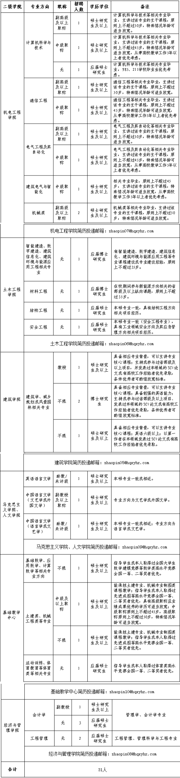 根據(jù)學(xué)院發(fā)展需求,現(xiàn)面向社會公開招聘專職教師共計31名,具體事項公告如下: