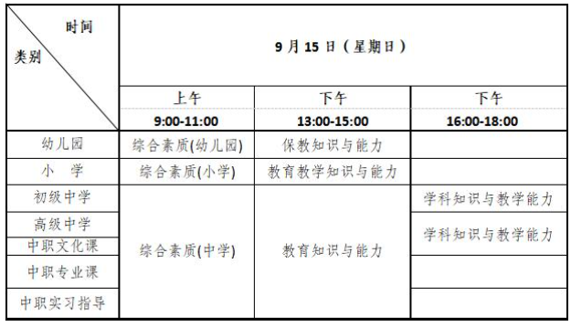 (一)中小學(xué)教師資格考試各學(xué)段考試科目的具體時(shí)間,如表1所示。