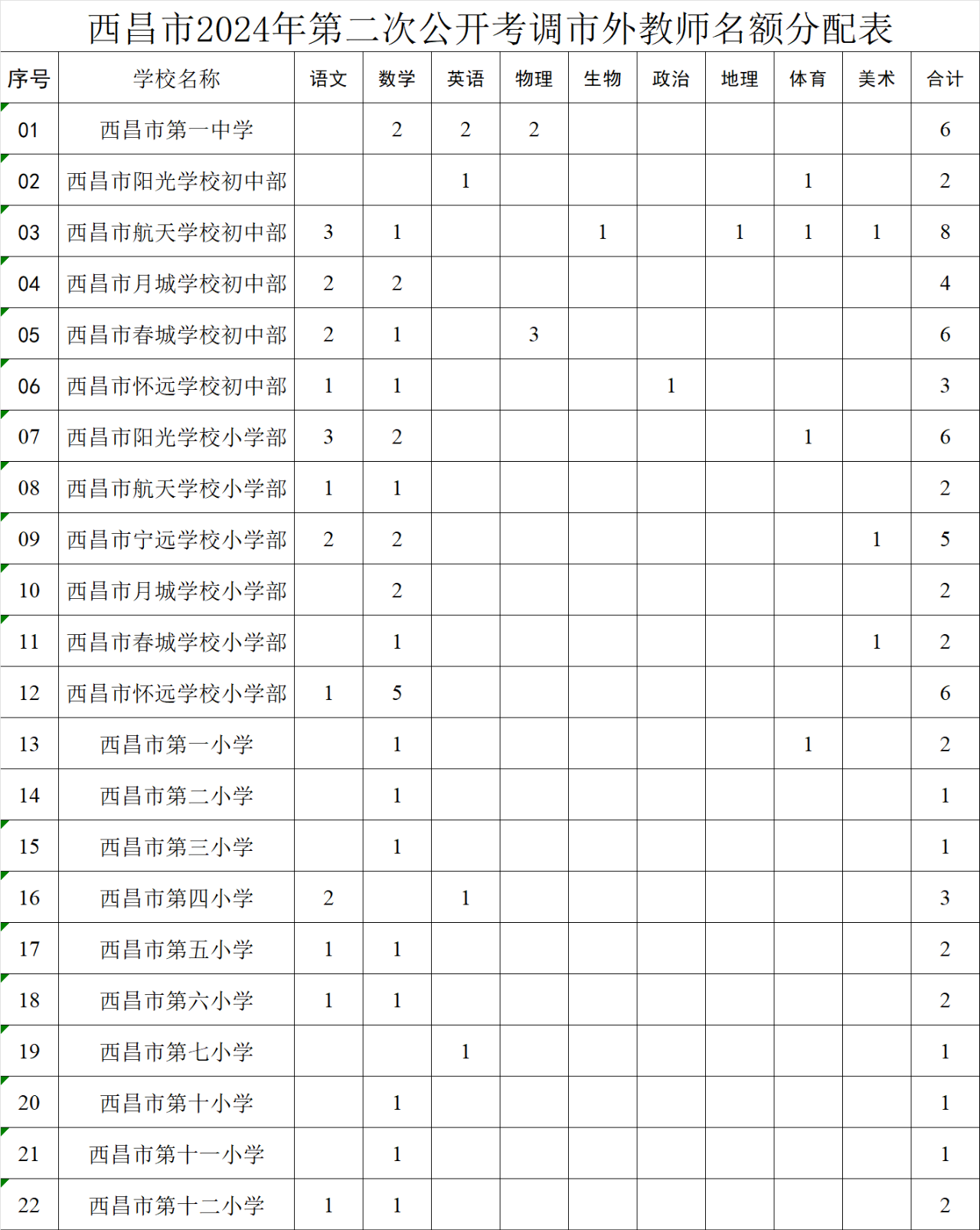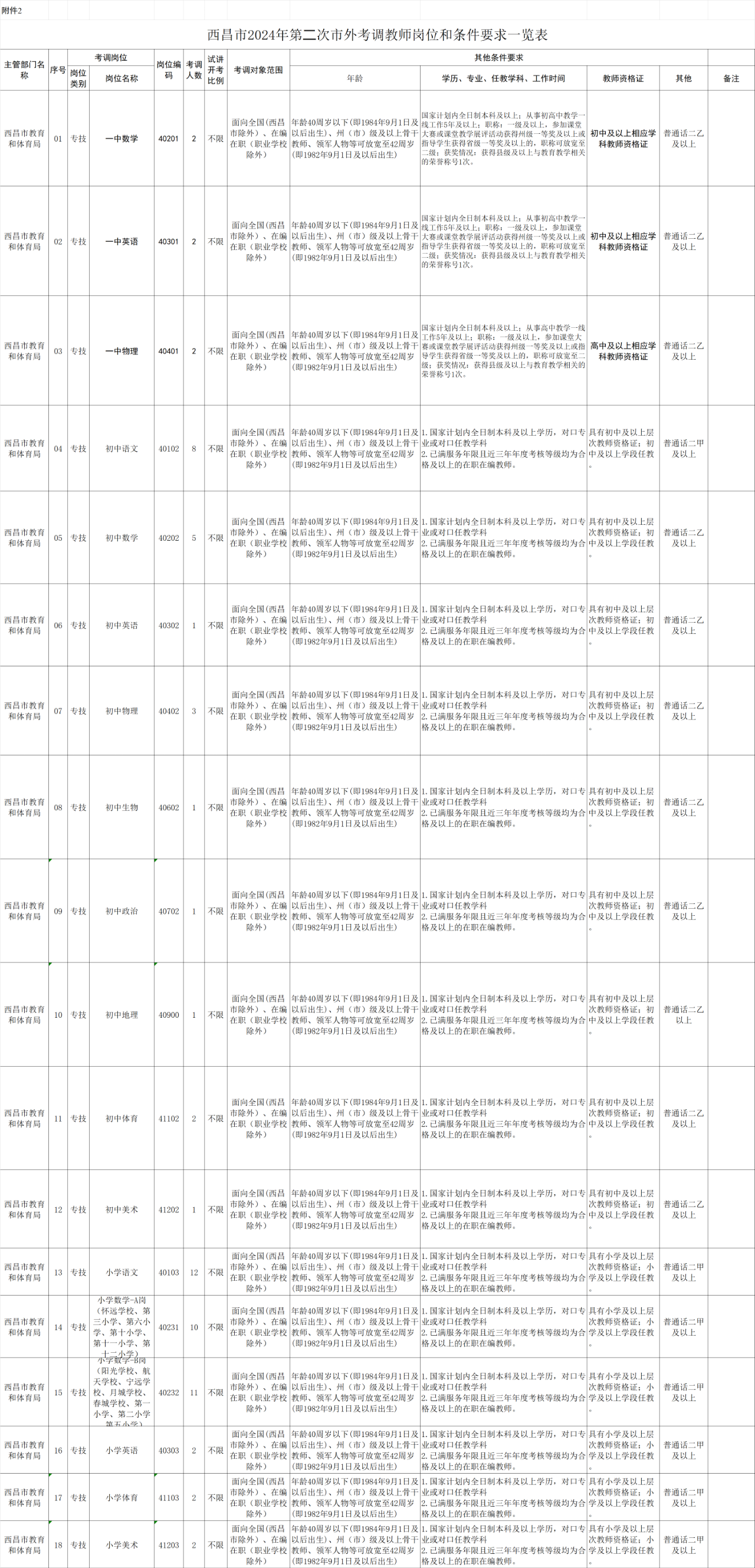 1.考調(diào)范圍:面向全國(guó)(西昌市除外)公立學(xué)校(職業(yè)學(xué)校除外)在編在職教師。