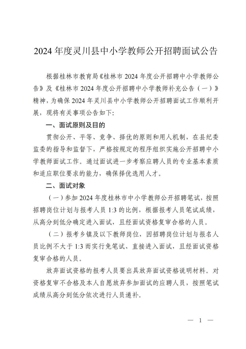 2024年度靈川縣中小學教師公開招聘面試名單、教材版本、考場分布圖 |