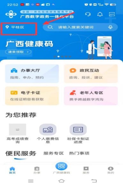 在市民手機上打開“廣西政務(wù)APP,選擇“賀州市-平桂區(qū)。
